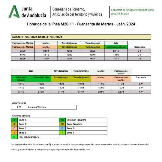 El Consorcio de Transportes Metropolitano de Jaén nos hace llegar nuevamente los horarios con la siguiente información, correspondiente a la linea de autobuses Fuensanta – Jaén / Jaén – Fuensanta con entrada en vigor desde el 22 de […]
