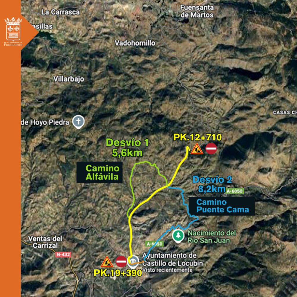 Nos comunican desde la Subdelegación del Gobierno que desde el día 21 de octubre hasta el 5 de diciembre estará cortada la carretera JA-3302 que une Fuensanta con Castillo de Locubín por el Regüelo desde el punto kilométrico 12 hasta el 19, con motivo de obras que afectan a toda la calzada.