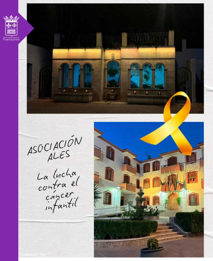 Desde el Ayuntamiento, nos comprometemos con esta lucha. Por eso, hemos teñido de amarillo nuestra fachada y la fuente de la negra, en colaboración con la Asociación de Padres de Niños con Cáncer de Jaén, A.L.E.S.