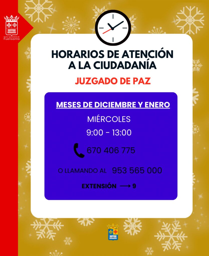 Se pone en conocimiento de la ciudadanía la modificación temporal de los horarios de atención al público del Juzgado de Paz, siendo el siguiente: