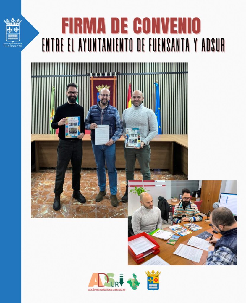 Esta mañana el Ayuntamiento de Fuensanta ha firmado un convenio con ADSUR para desarrollar el Plan Anual de Comarcalización de la Acción Cultural y Deportiva en la Sierra Sur de Jaén.