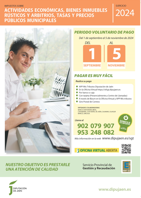 Os informamos de que el segundo periodo de pago voluntario para Impuestos sobre Bienes Inmuebles de Naturaleza Rústica, Actividades Económicas y Arbitrios, Tasas y Precios Públicos, está abierto desde el 1 de septiembre al 5 de noviembre de […]