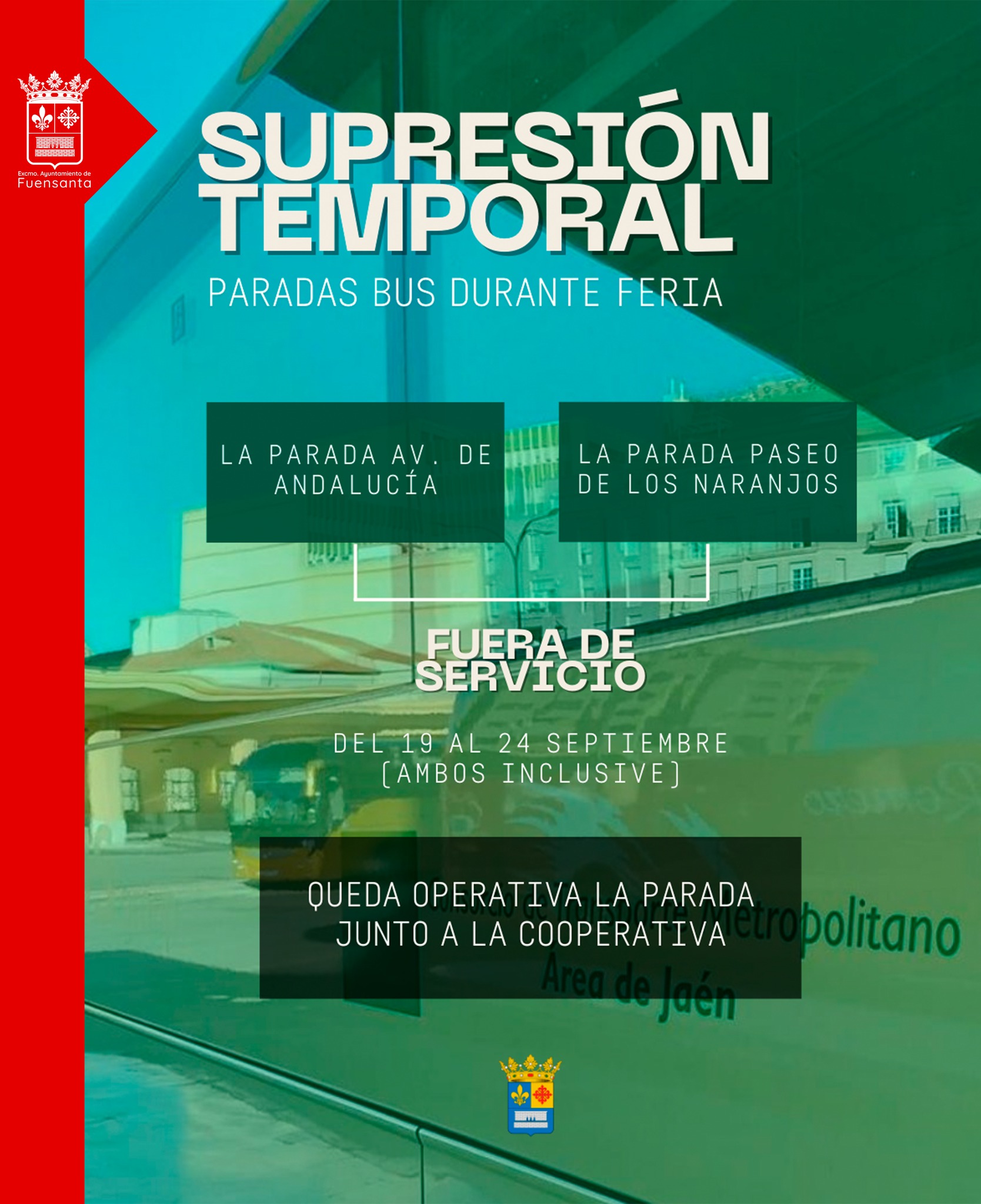 Con motivo de la celebración de las Ferias y Fiestas de Fuensanta 2025, se informa a los usuarios del servicio de transporte que las paradas ubicadas en Avenida de Andalucía y Paseo de los Naranjos (frente al Ayuntamiento) […]