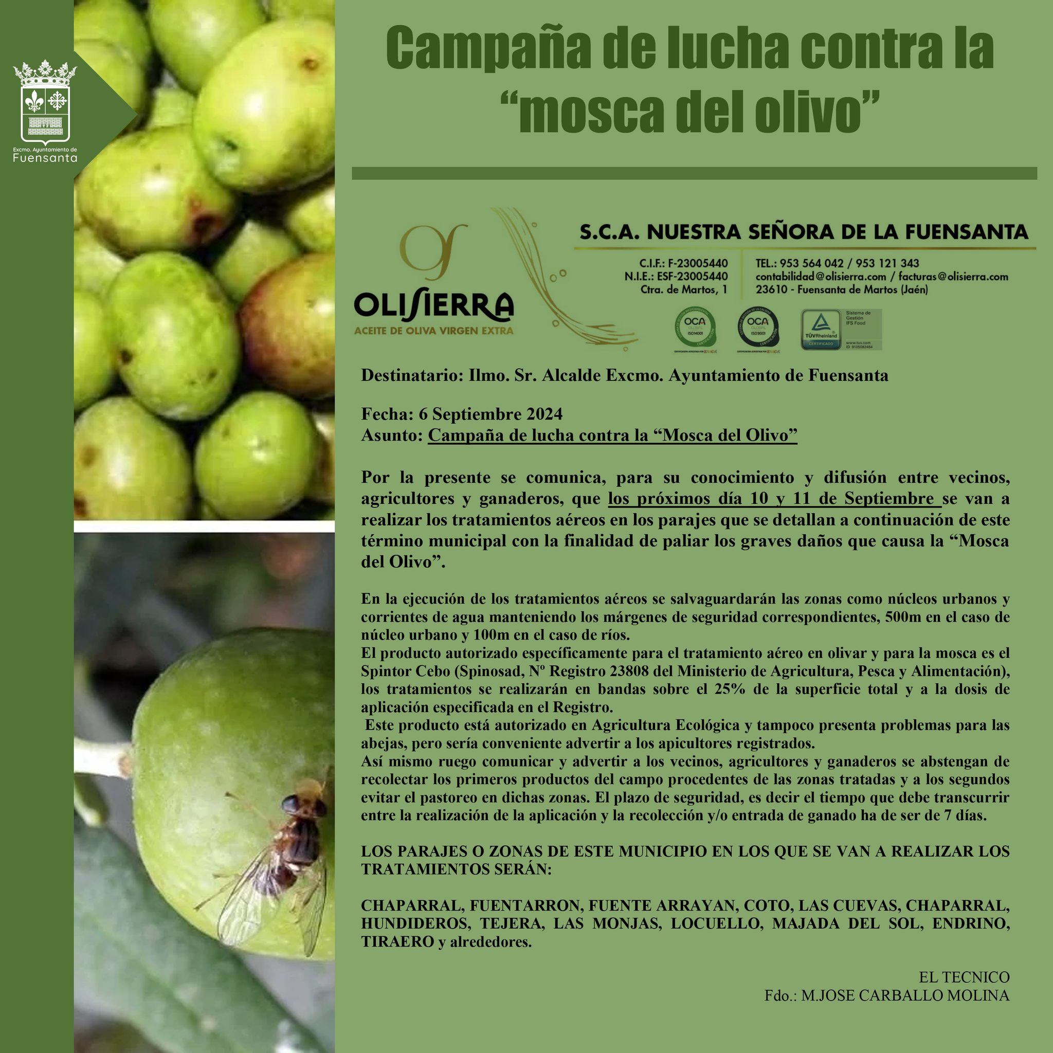 Desde la S.C.A. Nuestra Señora de la Fuensanta nos hacen llegar un documento informativo sobre el tratamiento que se va a realizar próximamente en distintos parajes de nuestra localidad, contra la denominada «Mosca del Olivo». El contenido de […]