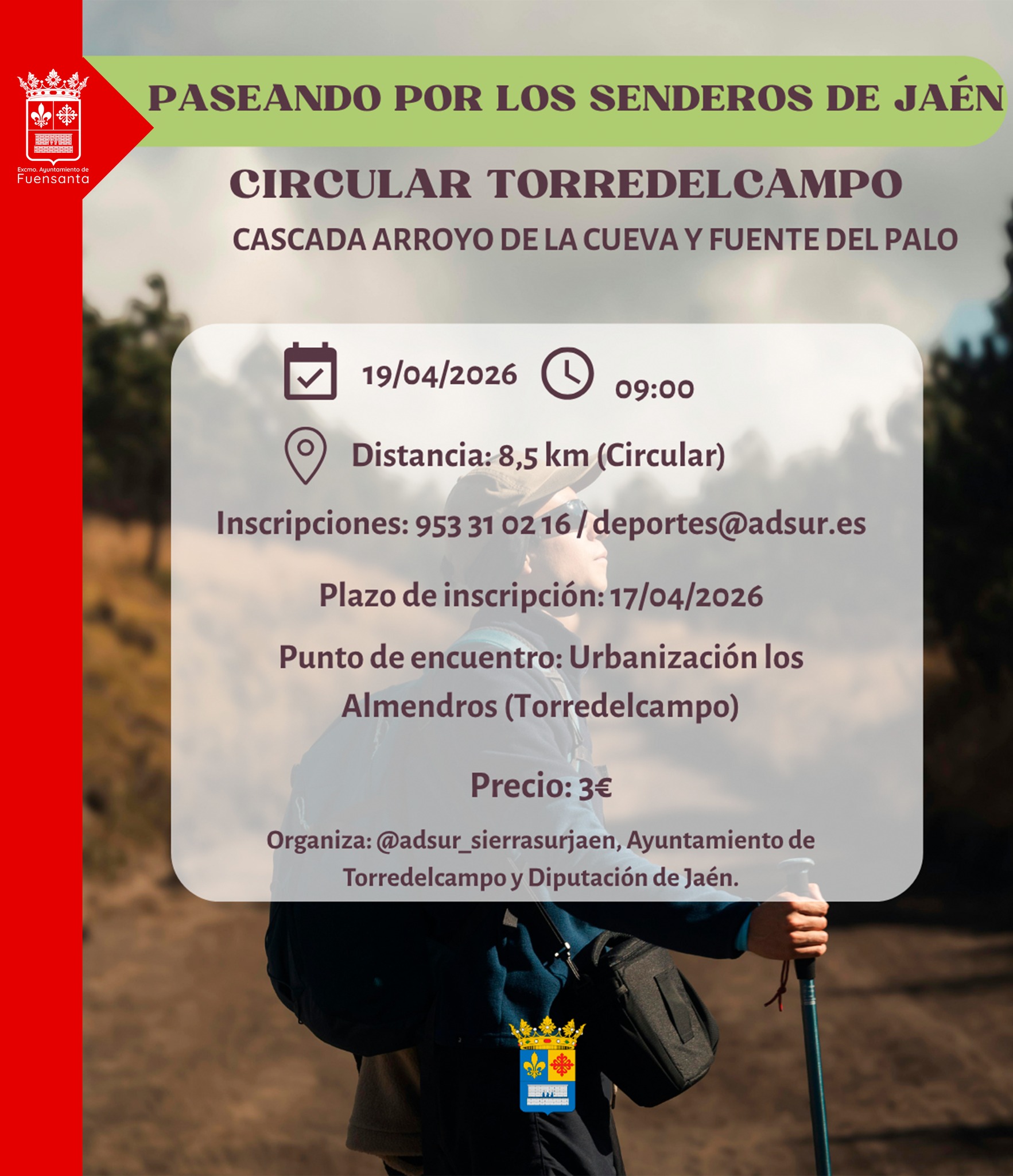 La Diputación de Jaén organiza una ruta circular por la Cascada Arroyo de la Cueva y Fuente del Palo, en Torredelcampo.⁣