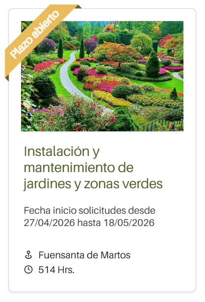 Del 27 de Abril al 18 de Mayo queda abierto el plazo de presentación de solicitudes para participar en el Curso: «INSTALACIÓN Y MANTENIMIENTO DE JARDINES Y ZONAS VERDES» perteneciente al proyecto Proempleo8 de la Diputación de Jaén.