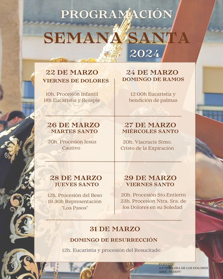 - 23:00h. Procesión Ntra. Sra. de los Dolores en su Soledad.